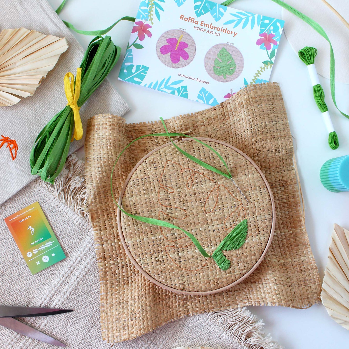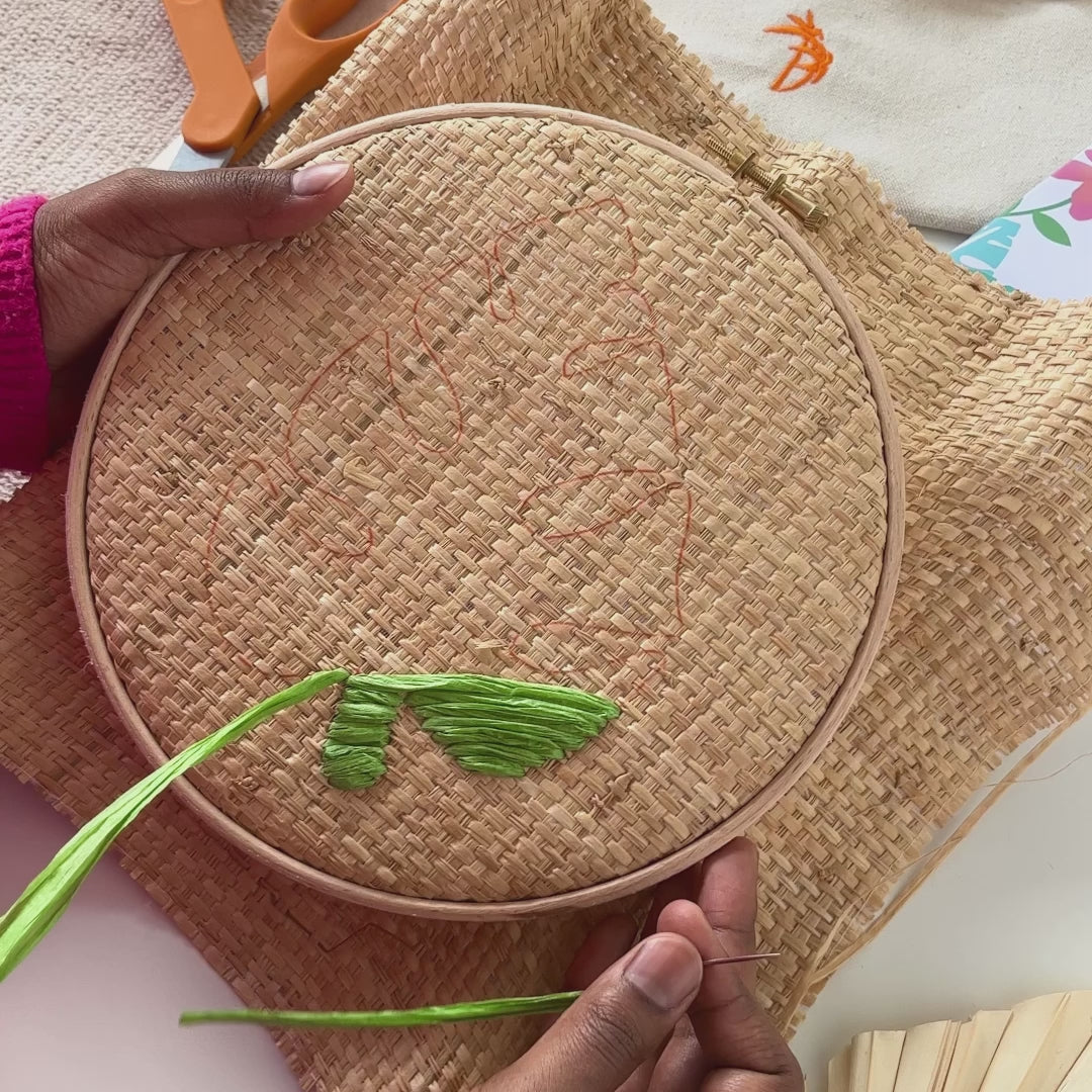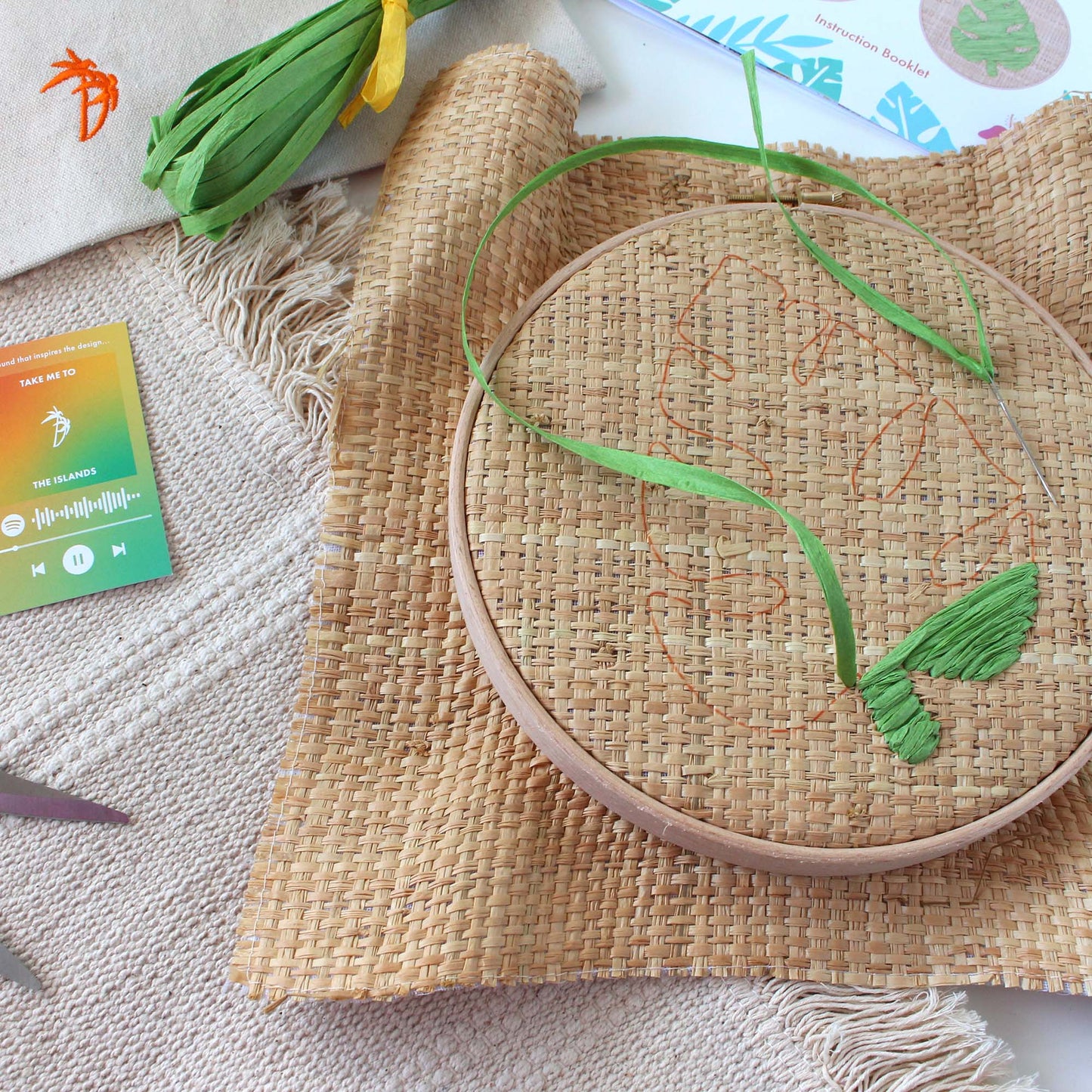This raffia embroidery kit is the perfect way to try a new craft & create a beautiful piece of art for your home. All you need is your enthusiasm, a willingness to learn (and a pair of scissors!).