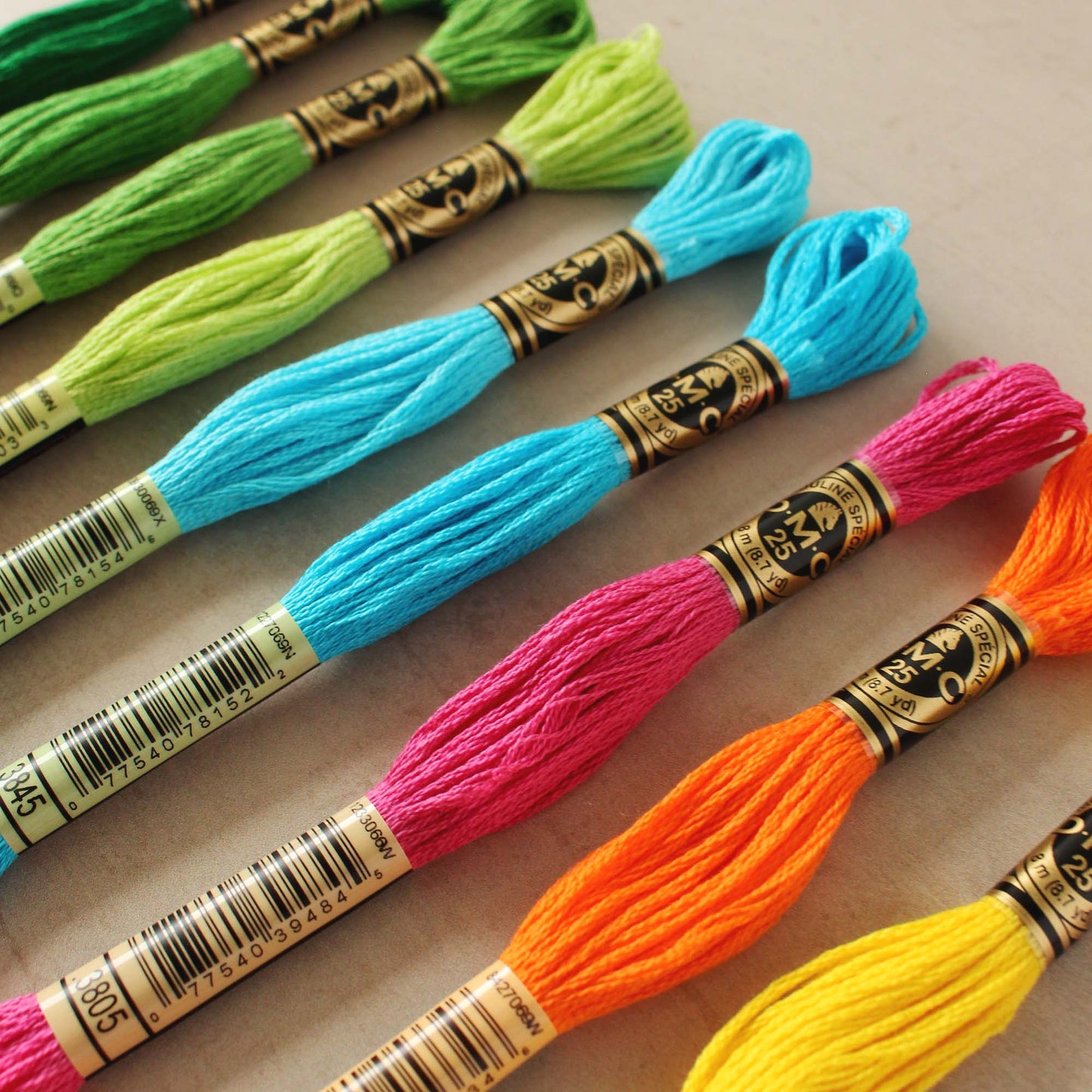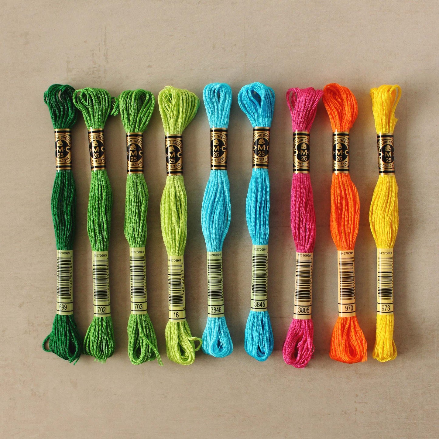 Premium stranded cotton embroidery thread from the DMC Mouliné Spécial range, available in a curated palette of tropical-inspired colours. Made with uses highly resistant colourfast dyes to prevent fading and bleeding, each 8-metre skein features six easily separable strands for precision in detailed work.