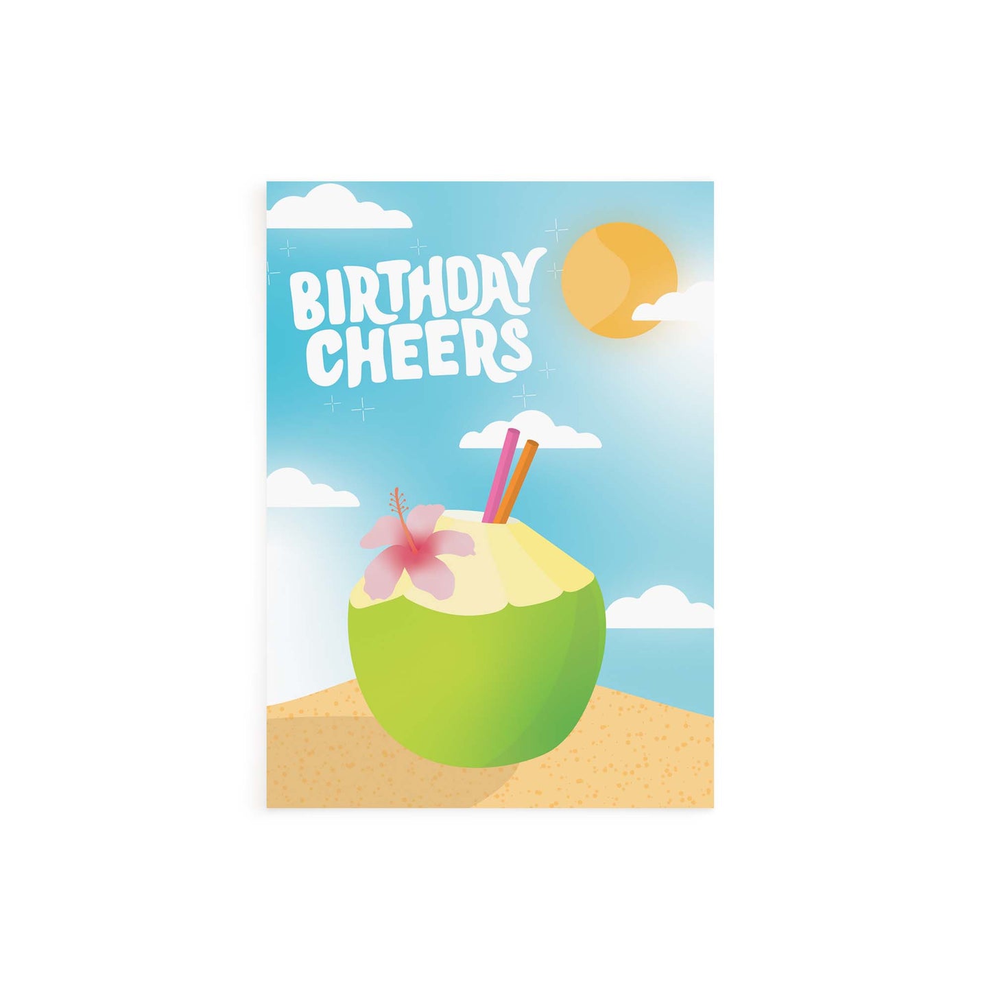 Send tropical birthday greetings with this card. Featuring a Caribbean beach illustration with a cheerful coconut drink, this card is sure to make the recipient smile.