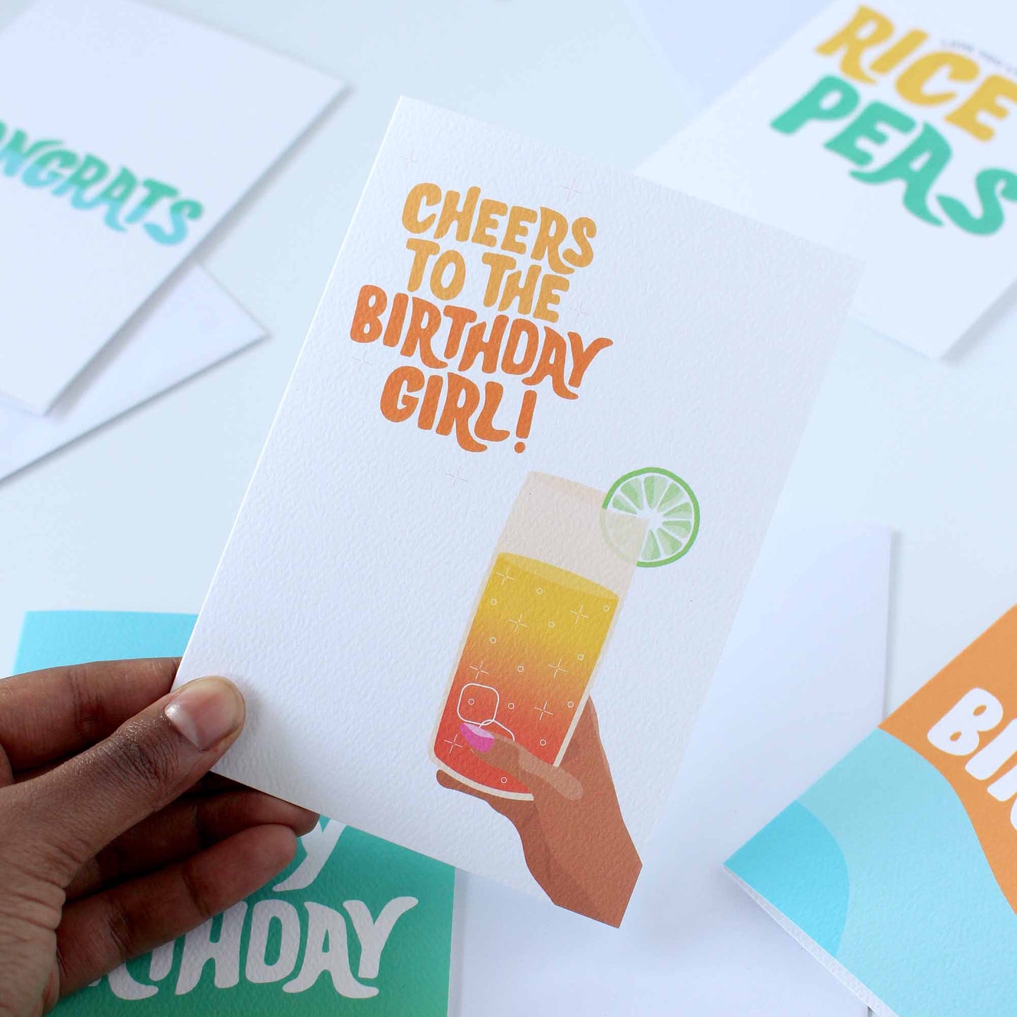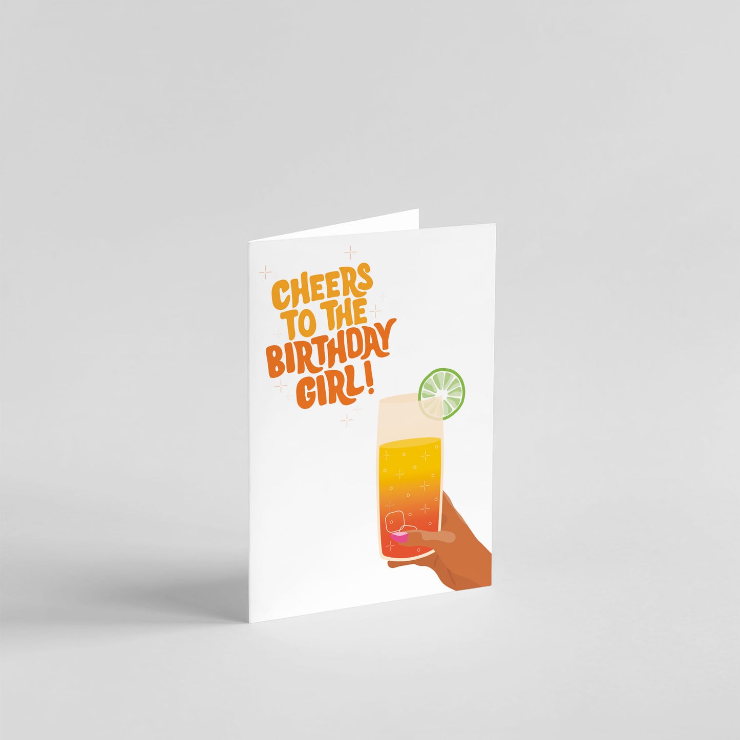 Toast to the birthday girl with this fun card featuring a fruity Caribbean rum cocktail!