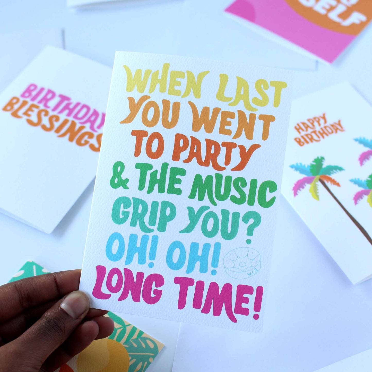 Send some carnival party vibes to your loved ones with this vibrant greeting card. Inspired by the soca carnival classics played at Notting Hill Carnival and Caribbean carnivals.