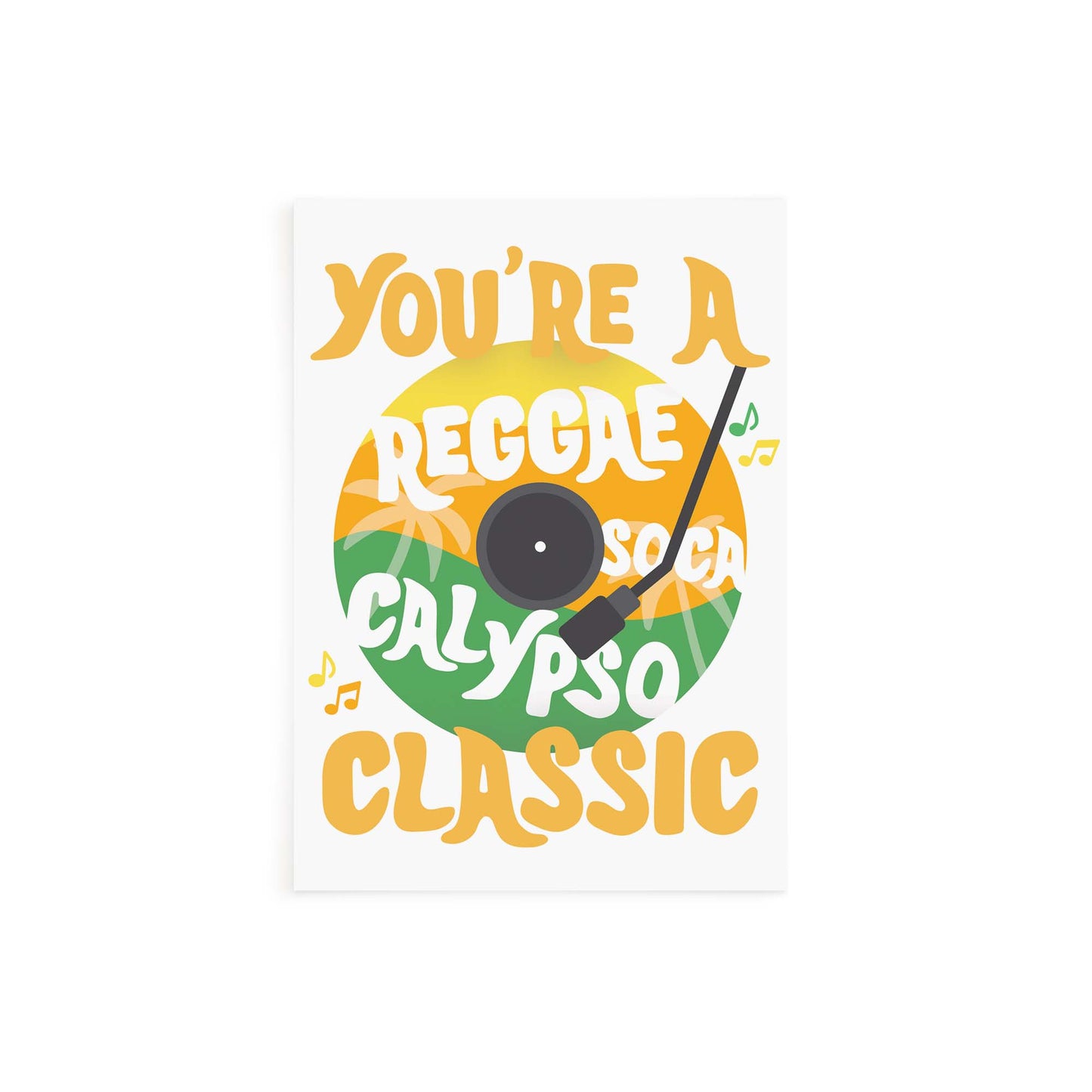 This card is perfect for fans of reggae, calypso, soca and Caribbean music! Show someone you care by sending this fun and unique birthday card, letting them know they're a true classic! The music lover in your life will definitely appreciate this!