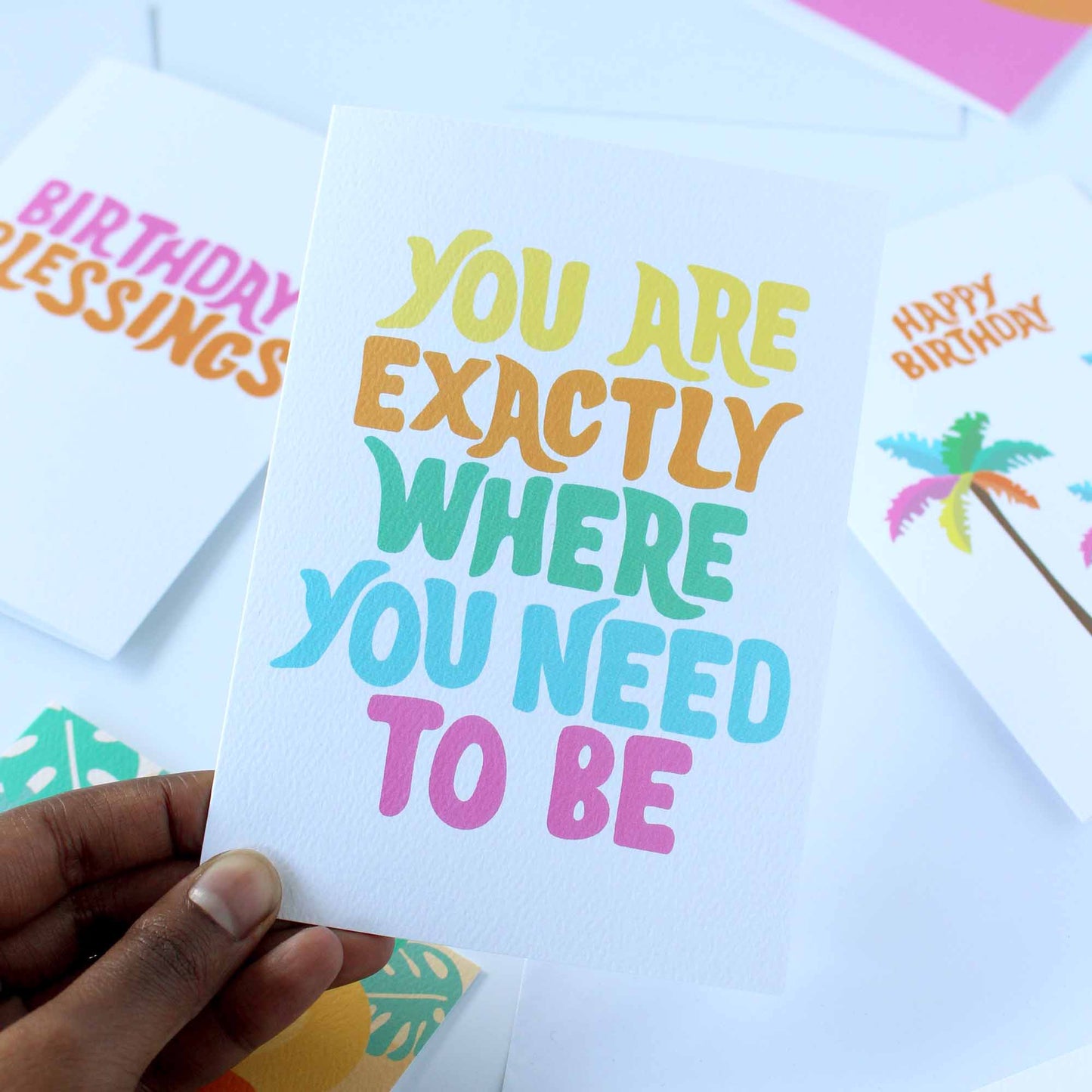 An uplifting and encouraging card for a loved one to let them know they're doing amazing, and remind them they're exactly where they need to be.