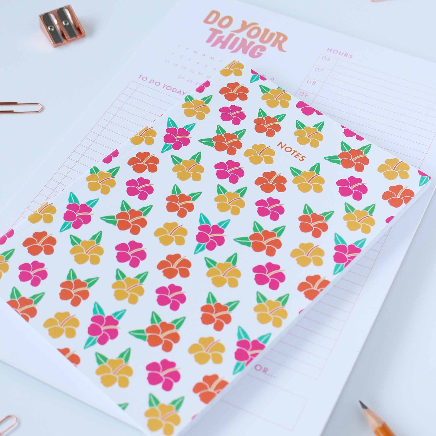 Keep all your notes, lists and plans in this A5 notebook. Inspired by the colour, beauty and nature of the Caribbean, this notebook features a tropical Hibiscus print. Perfect to keep on your desk for when inspiration strikes, but also great to carry around with you.
