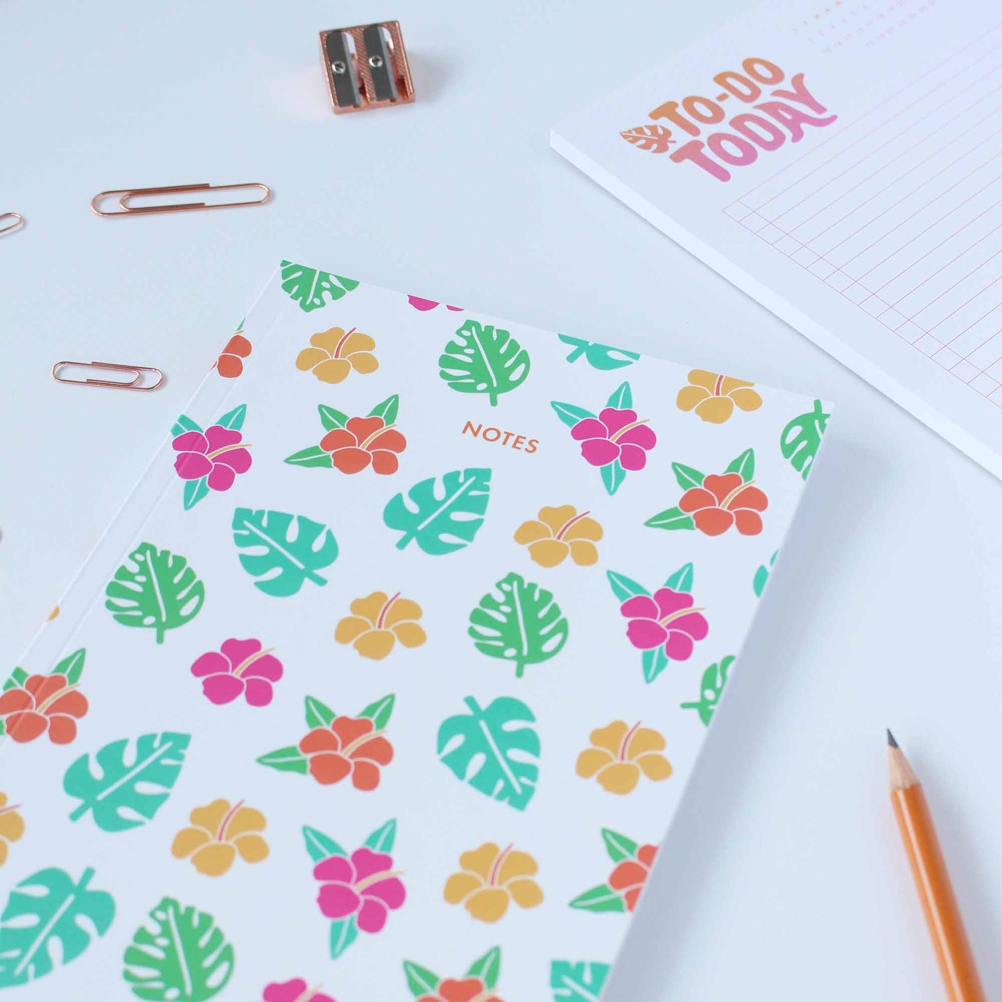Keep all your notes, lists and plans in this A5 notebook. Inspired by the colour, beauty and nature of the Caribbean, this notebook features a tropical Hibiscus & Monstera print. Perfect to keep on your desk for when inspiration strikes, but also a great to carry around with you.