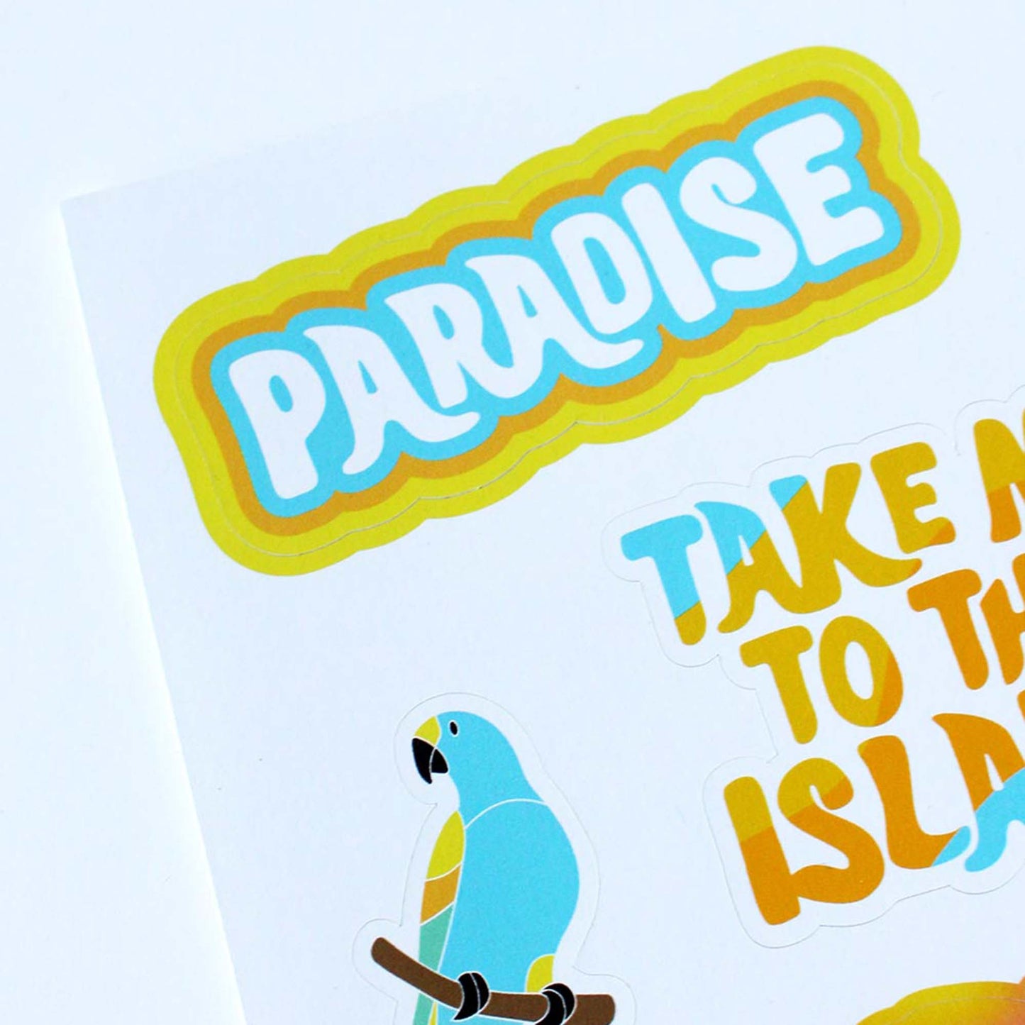 This tropical sticker sheet features twelve bright and colourful stickers to get you in the summer mood. With the iconic palm tree, monstera leaf and hibiscus flower - stick these wherever needs a dose of tropical vibes! Ideal decoration for journals, diaries, planners and even laptop and phone cases.