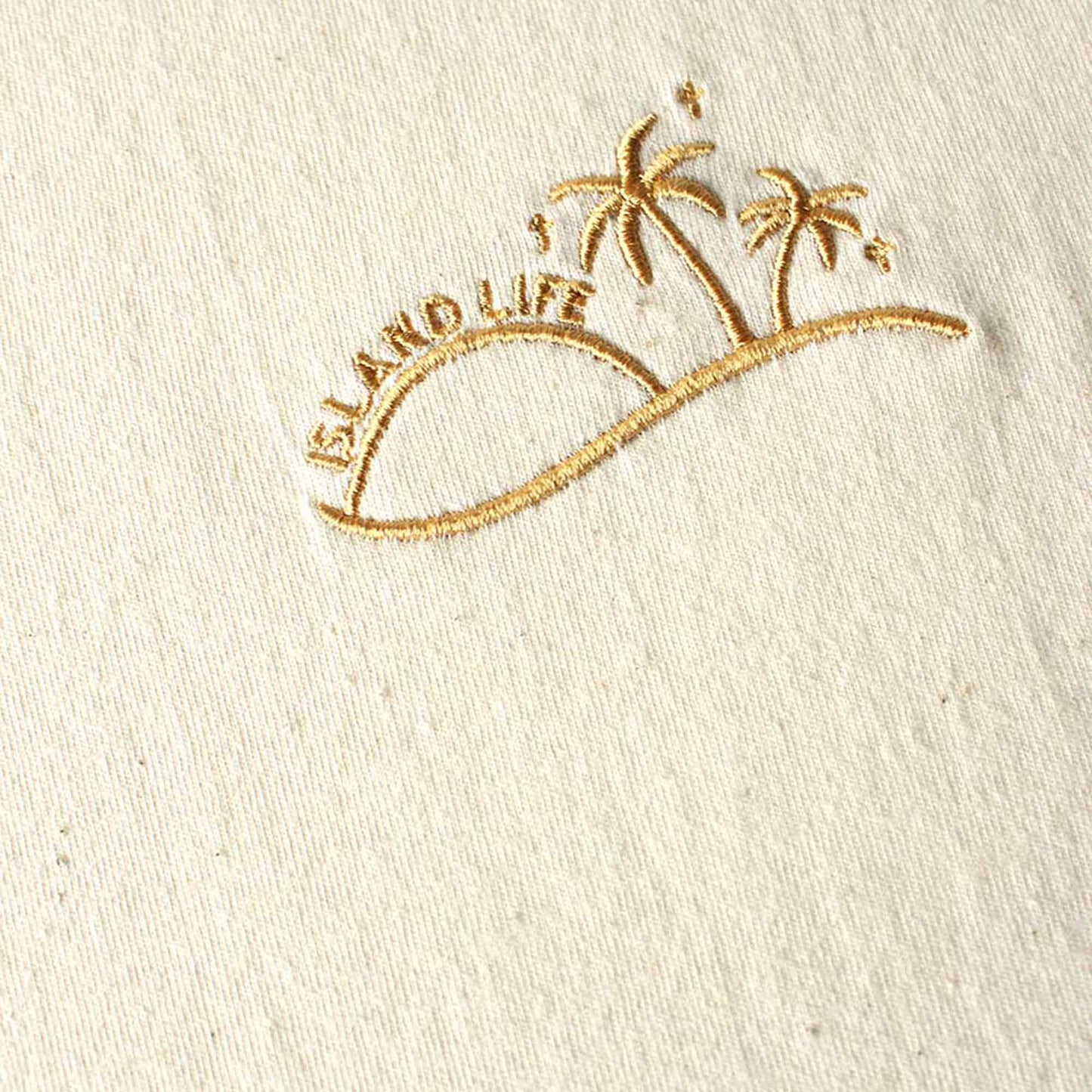 Live your best island life with this relaxed fit t-shirt. The perfect addition to your summer wardrobe, this t-shirt is embroidered with the metallic gold palm tree island life icon. This t-shirt is made from organic cotton and has been embroidered in the UK.