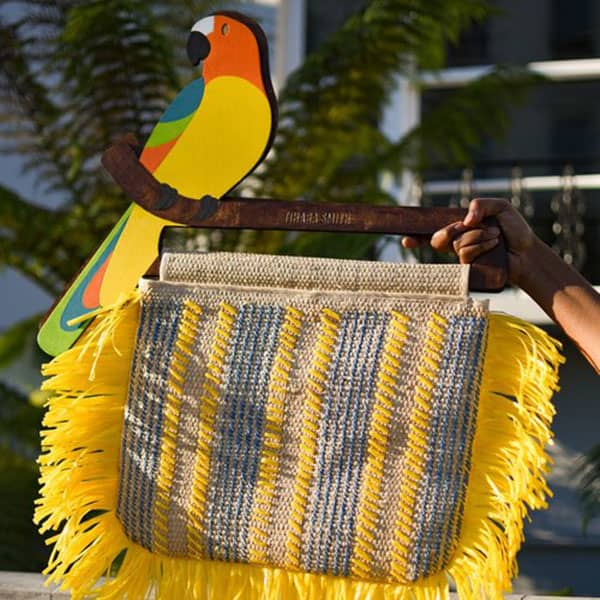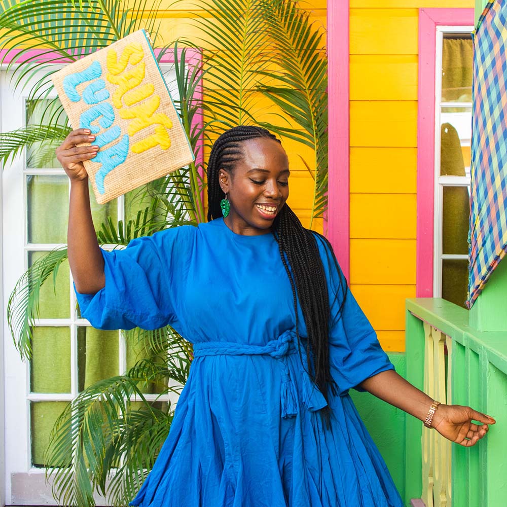 Fashion, travel & lifestyle blogger Kristabel Plummer styled our raffia embroidered Saint Lucia pouch on a trip to the Caribbean island.