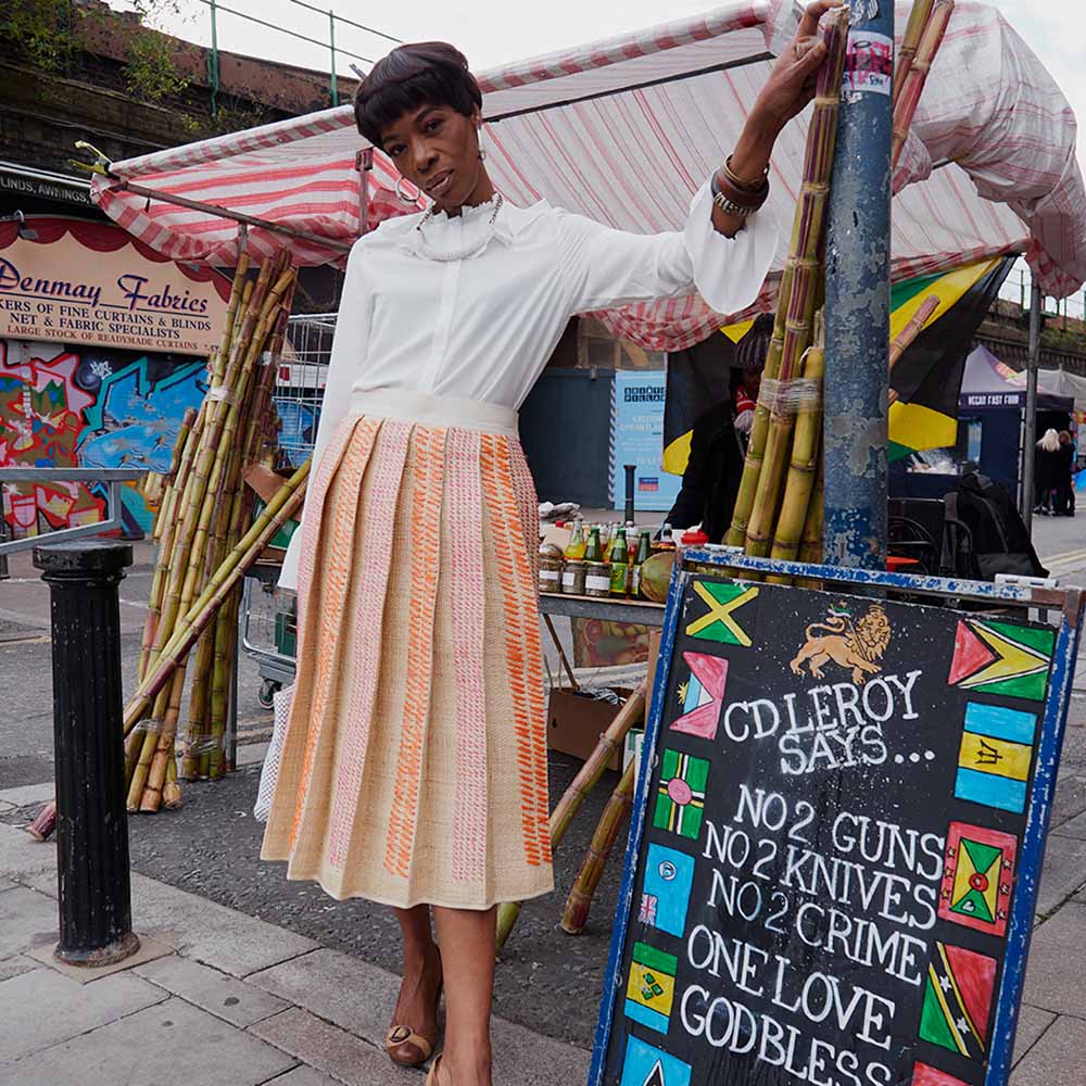Stylist Charlita Hall borrowed pieces from the Windrush Collection to use in a short film highlighting the impact of the Windrush Generation.