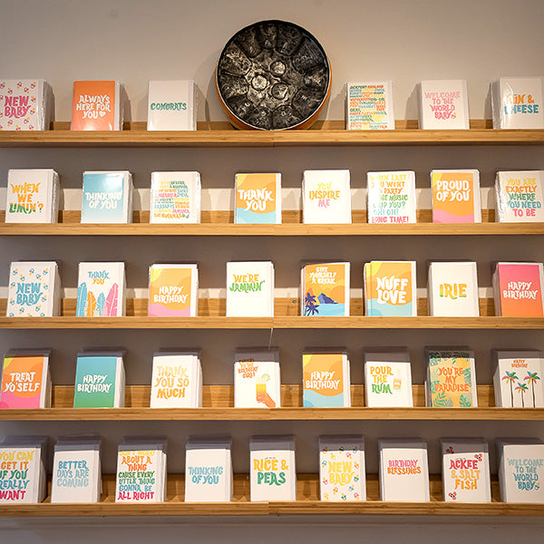 Our greeting card wall was the first thing you saw when coming into the pop-up shop featuring all our Caribbean inspired, tropical greeting cards! Some of the favourites included the Don't Worry Card and Love You Like Ackee & Saltfish Card.