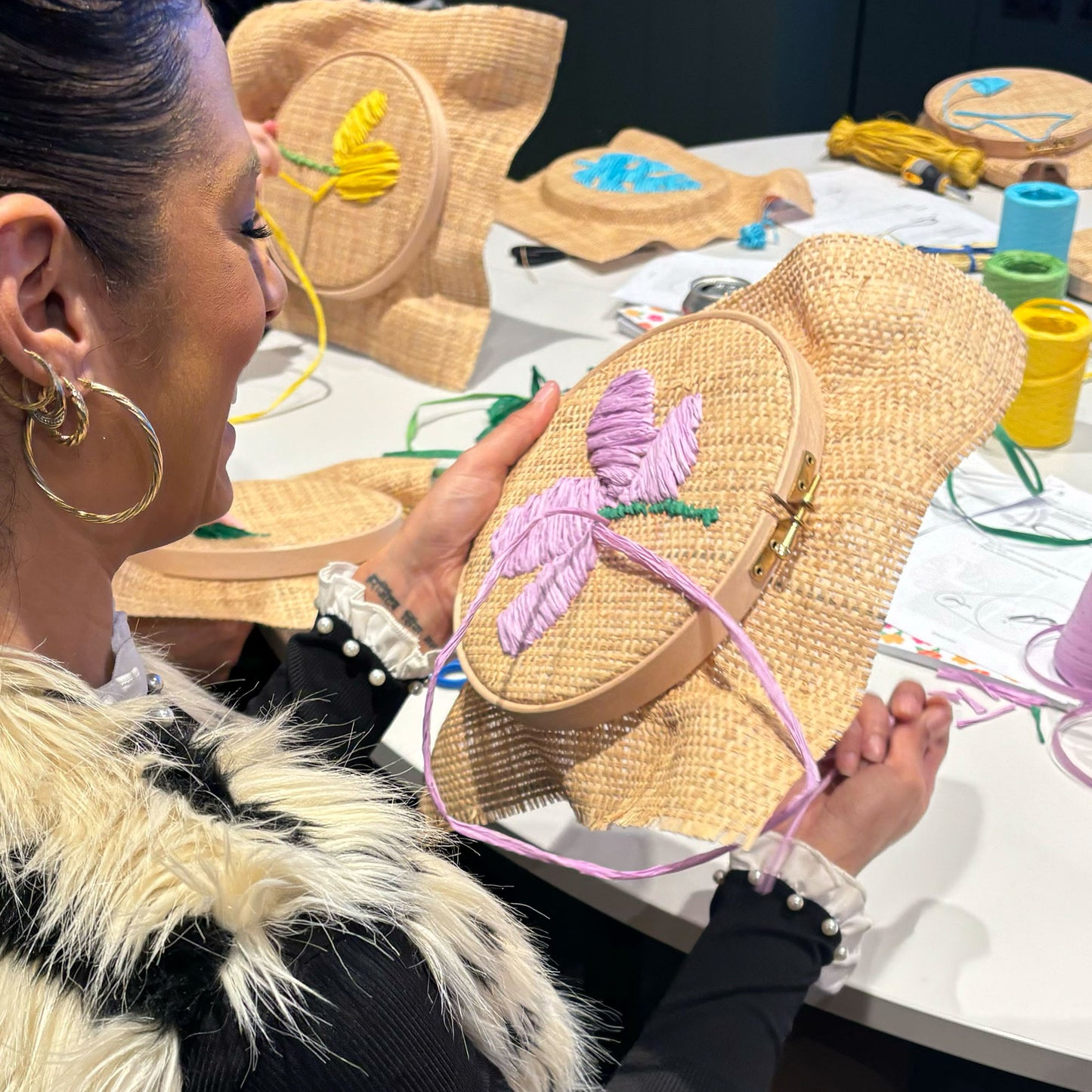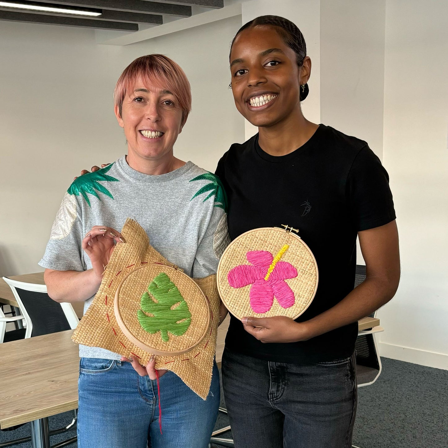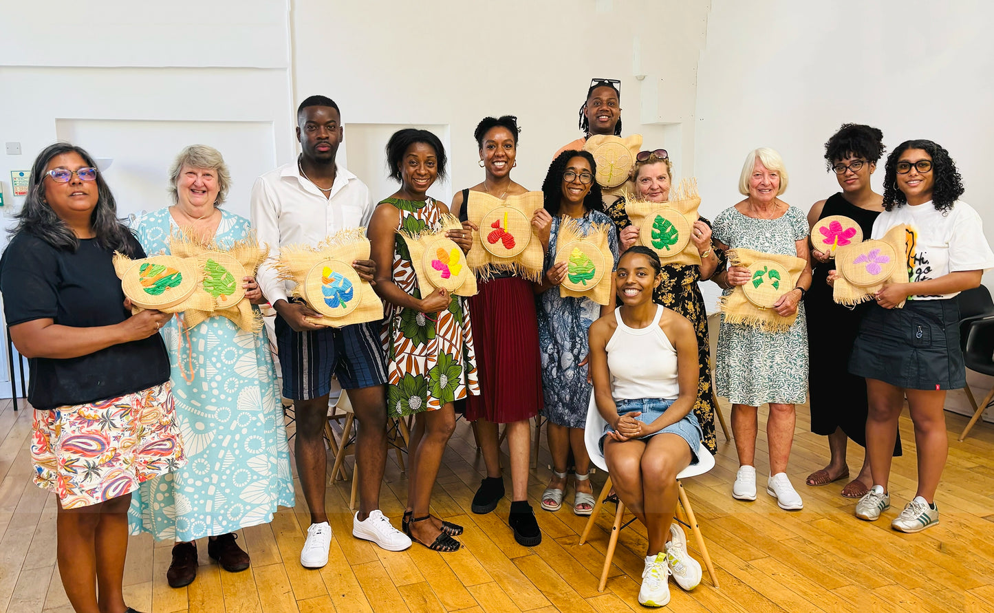 Learn the basics of raffia embroidery at one of our fun and creative workshops that are perfect for beginners. During each workshop, I teach my raffia embroidery technique, inspired by Caribbean crafts and the work that I developed whilst creating my Windrush collection. Our workshops are a great way to relax and de-stress whilst learning a new skill and creating a beautiful piece of art to take home.