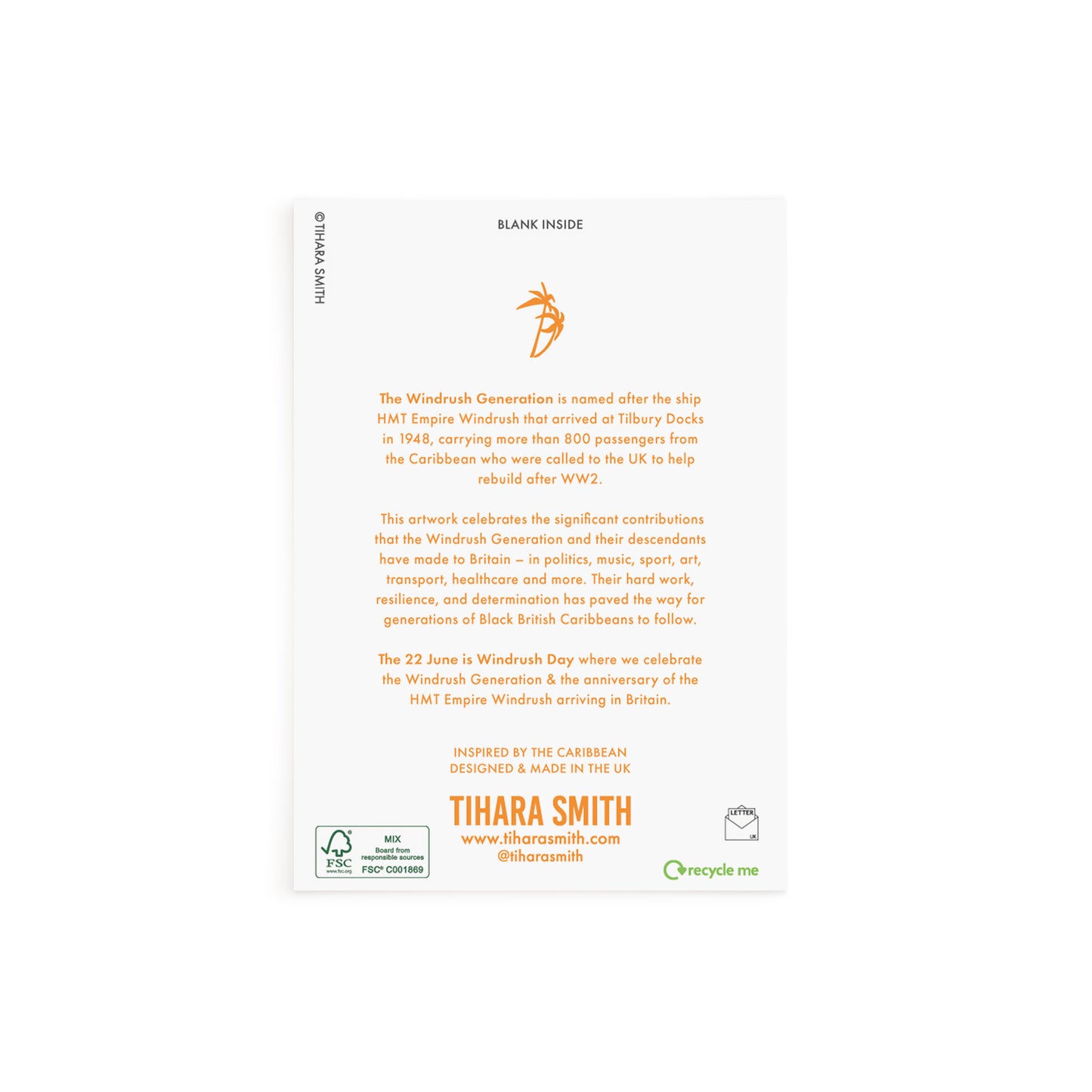 This greeting is perfect for celebrating Windrush Day which happens annually on the 22nd June, where we celebrate the Windrush Generation & the anniversary of the HMT Empire Windrush arriving in Britain.